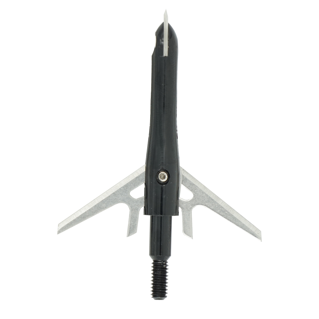 The Rocky Mountain Warhead features an aluminum ferrule with a 1.75-inch cutting diameter and a cut-on-contact tip blade design that starts working the instant it makes contact. The Warhead’s jackknife blade-deployment system will not open until the blades have made full contact with the animal, making broadside and even angled shots more deadly. With its aluminum ferrule and durable 0.035-inch-thick stainless steel blades, the new Rocky Mountain Warhead slices through hide and soft tissue on contact, yet it has the strength and sharpness to bust through bone.