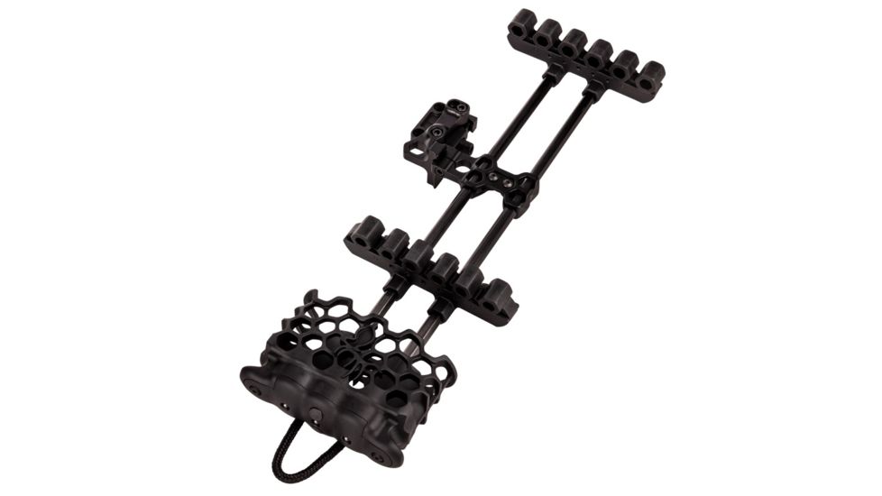 Shed some light on early morning setup in the stand or blind with the Hex Light Quiver from Trophy Ridge. Featuring 4 green LED lights to illuminate your arrows and surroundings in low-light situations, this quiver helps you get ready for the hunt without fumbling with a separate flashlight. Soft-touch hood construction reduces vibration and eliminates noise, while the customizable single- or dual-arrow grippers hold arrows securely. Adjustable mount offers a low-profile fit against the bow with a quick attachment design for fast and easy mounting and detachment.
