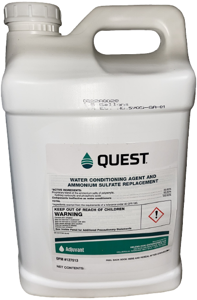 Quest Conditioning agent and ammonium sulfate replacement. Quest is an effective blend of water conditioning agents and spray adjuvants designed to make pesticide sprays more efficient. Quest removes carbonates and bicarbonates that can deactivate pesticides. It also sequesters metal cations and modifies the pH of the spray solution. Quest can be used as liquid replacement and/or a supplement to ammonium sulfate.