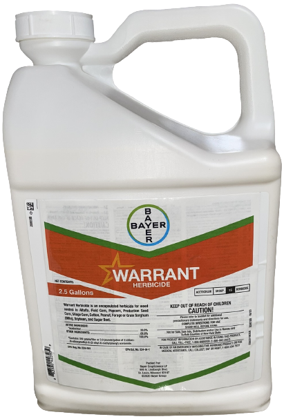 Warrant Herbicide Acetochlor Agricultural Herbicide – 2.5 Gallon is an encapsulated herbicide for weed control in field corn, production seed corn, cotton, peanut, forage or grain sorghum (milo), soybean, and sugar beet.