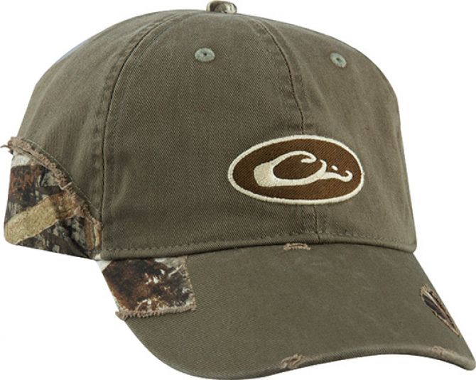 The Distressed Combo Cap casually blends camo and solid into a cap that fits in anywhere. The camo accents are highlighted by a distressed effect. This cap is constructed with a low profile fit, unstructured front panels, and a self-fabric back closure with brass slide adjustment. Part hunting, part casual, all outdoors. This cap flows seamlessly from the duck blind to a backyard barbeque.