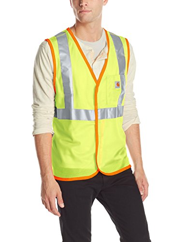 Make the bright choice for jobsite safety with Carhartt’s High-Visibility Class 2 Vest. This men’s high-visibility vest is built to last with triple-stitched seams. It’s made with ultra-light mesh so it works well through warm weather. There’s a utility pocket on the chest, and the 3M Scotchlite relfective trim is segmented for breathability.