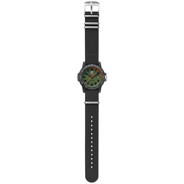This iconic Luminox case design is often referred to as the “turtle-shape” case. The Leatherback Sea Turtle features an impressive 44 mm CARBONOXTM case and is water resistance up to 100 meters. At night, the self-powered Luminox Light Technology lighting “Always Visible” for up to 25 years.