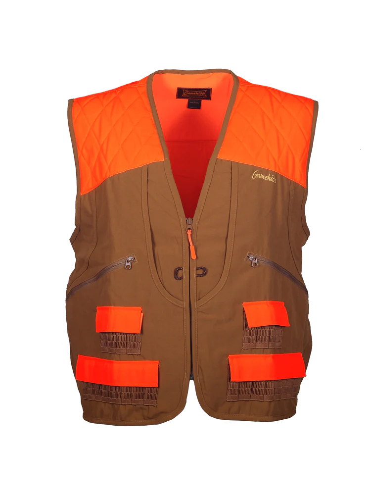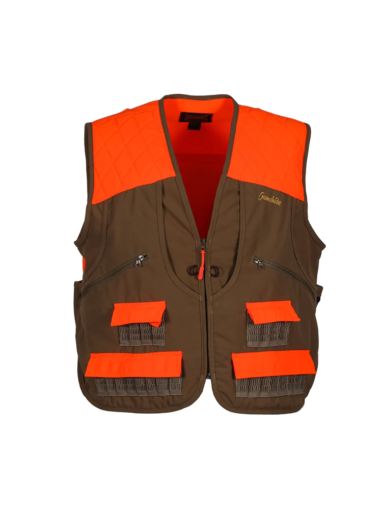 Gamehide’s Pheasant Vest is the standard for upland hunting and our best upland hunting vest for over 20 years! Easily carry your harvest with a front and rear loading, blood proof game bag. External shell loops hold 12 or 20 gauge shells along with two zippered, dump style pockets. This classic looking vest will last many years and bring back memories every time you pull it out of the closet.