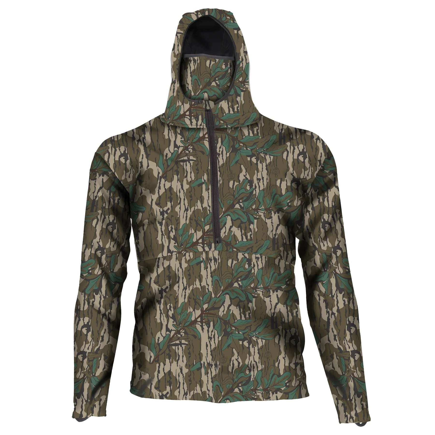 he perfect spring hunting hoodie! Incredibly light and comfortable, the 4-way stretch performance fabric doesn’t bind or pull. Built-in facemask easily pulls on and stores conveniently behind you when not in use. The 3-piece hood fits great thanks to the stretch fabric and adds to your concealment with very little bulk. Thumb loops keep sleeves in place while pulling on other layers. Extra-long, low profile front zipper makes this hoodie a breeze to pull on and helps excess heat escape while on the move.