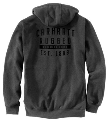 The Carhartt\u00ae Original-Fit Midweight Rugged Workwear Graphic Hooded Sweatshirt for Men combines workwear style and unbeatable performance for a must-have addition to any men’s work clothes collection. Cotton/polyester blended fleece fabric bring.