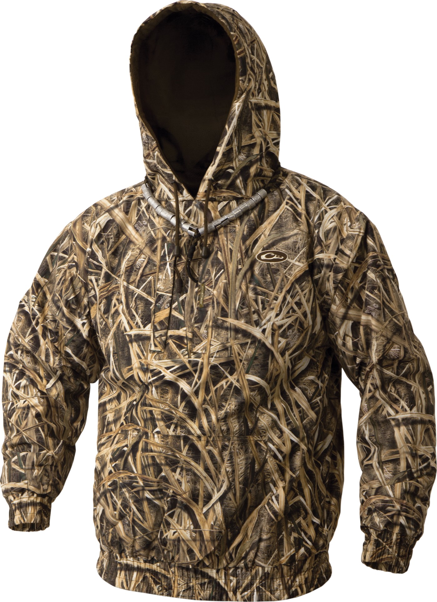 Drake’s MST Waterproof Hoodie is a favorite among layout blind and sneak-boat hunters. The comfort of a hoodie – the protection of a jacket. The Drake MST Waterproof Hoodie was developed in response to hunters asking for a warm, waterproof MST top with an attached hood. The fleece lining and protection of Refuge HS shell fabric in a low-profile, low-bulk design is a great alternative to wearing a traditional cotton hoodie under a waterproof over-coat. The warm 280 gram fleece lining keeps you warm during mid-season hunts, while the attached hood and 100% waterproof/breathable HyperShield 2.0 technology keeps you dry. – See more at: https://www.drakewaterfowl.com