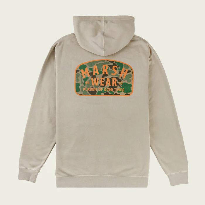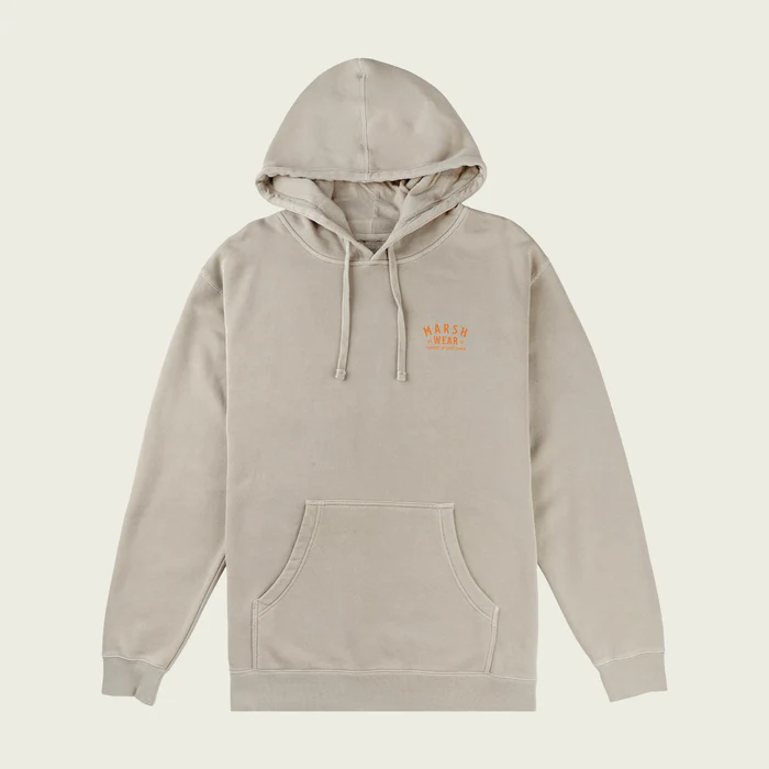 Description 80% cotton, 20% polyester. Midweight pigment dyed fleece. Screenprinted logo.