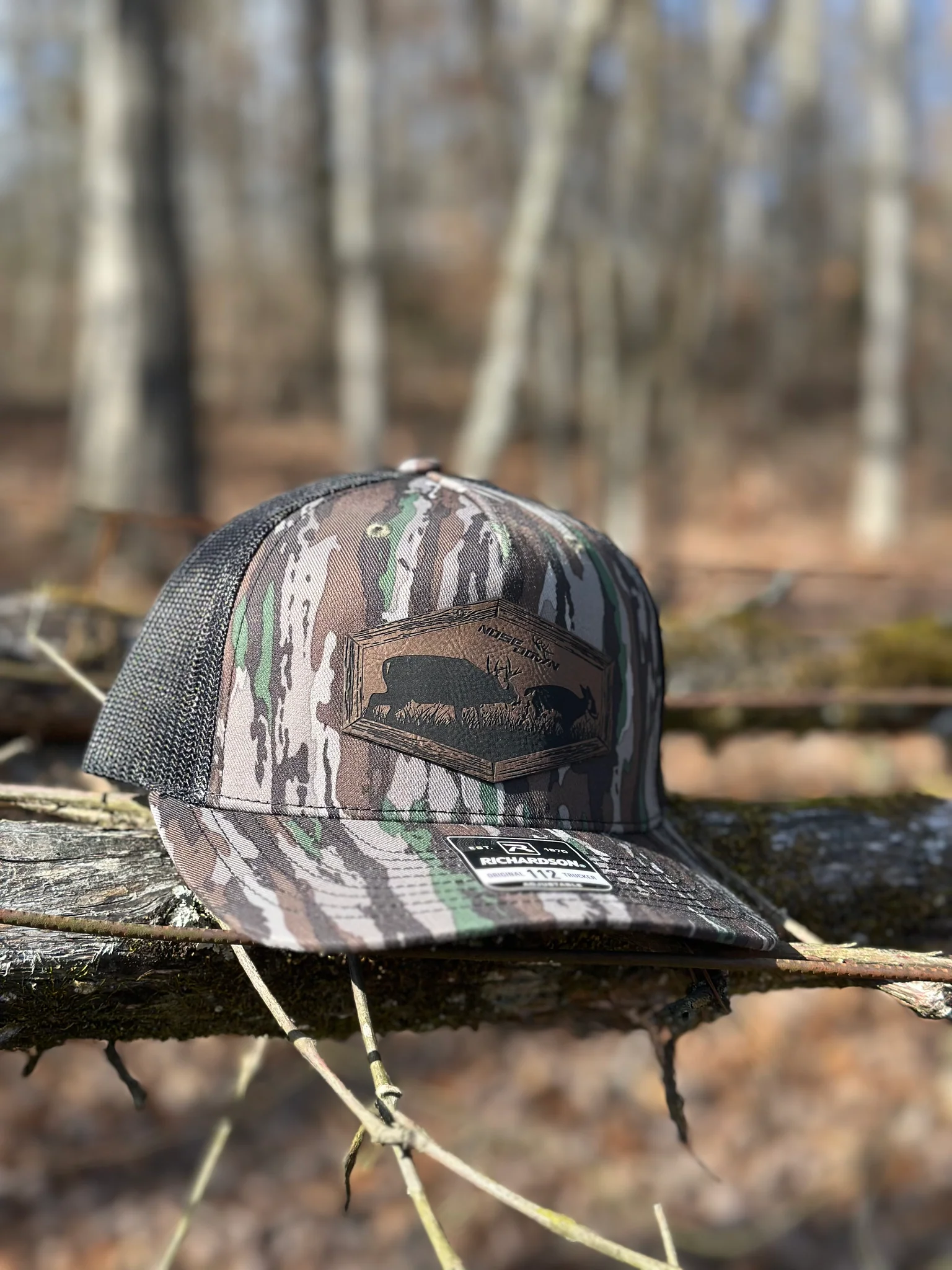 Our new addition of the buck chasing a doe patch. The perfect hat for deer hunters.