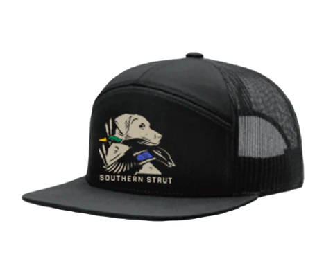 Capture the spirit of the hunt with the Southern Strut Dog With Game Hat. Featuring a detailed dog and game bird graphic, this breathable trucker hat offers a rugged style and adjustable fit. Perfect for hunting enthusiasts and outdoor adventurers.