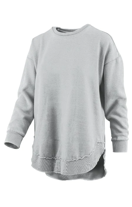 Imagine the coziness of your favorite vintage crew neck with a fun updated twist! The curved hem and vintage wash add a contemporary flare to this closet essential.