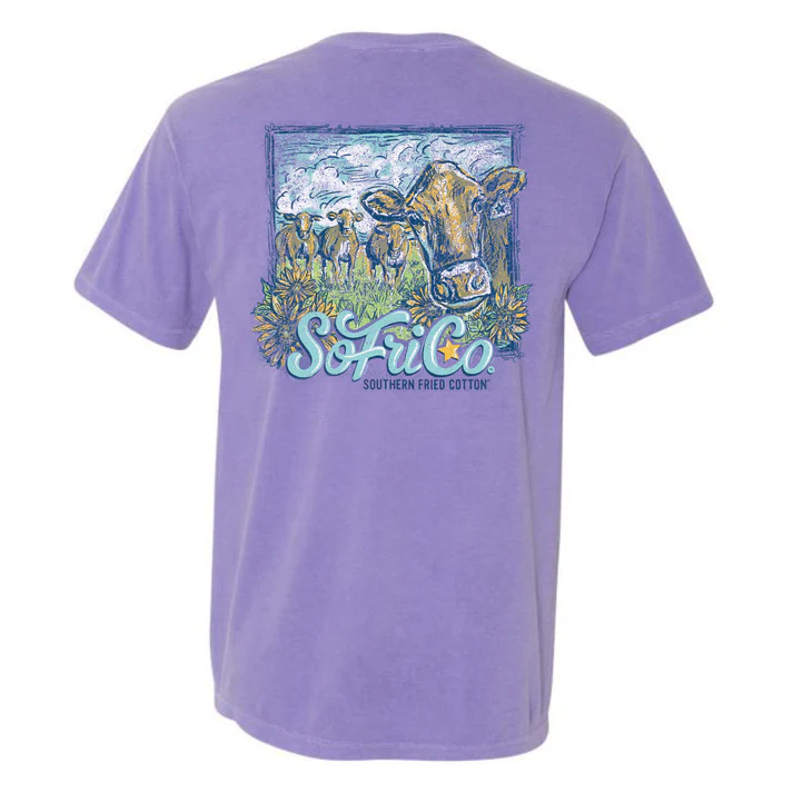 Add some charm to your wardrobe with this Cute Cows tee. Featuring a playful scene of cows in a field, this violet shirt is both girly and comfortable. Perfect for animal lovers and anyone looking to make a bold fashion statement.