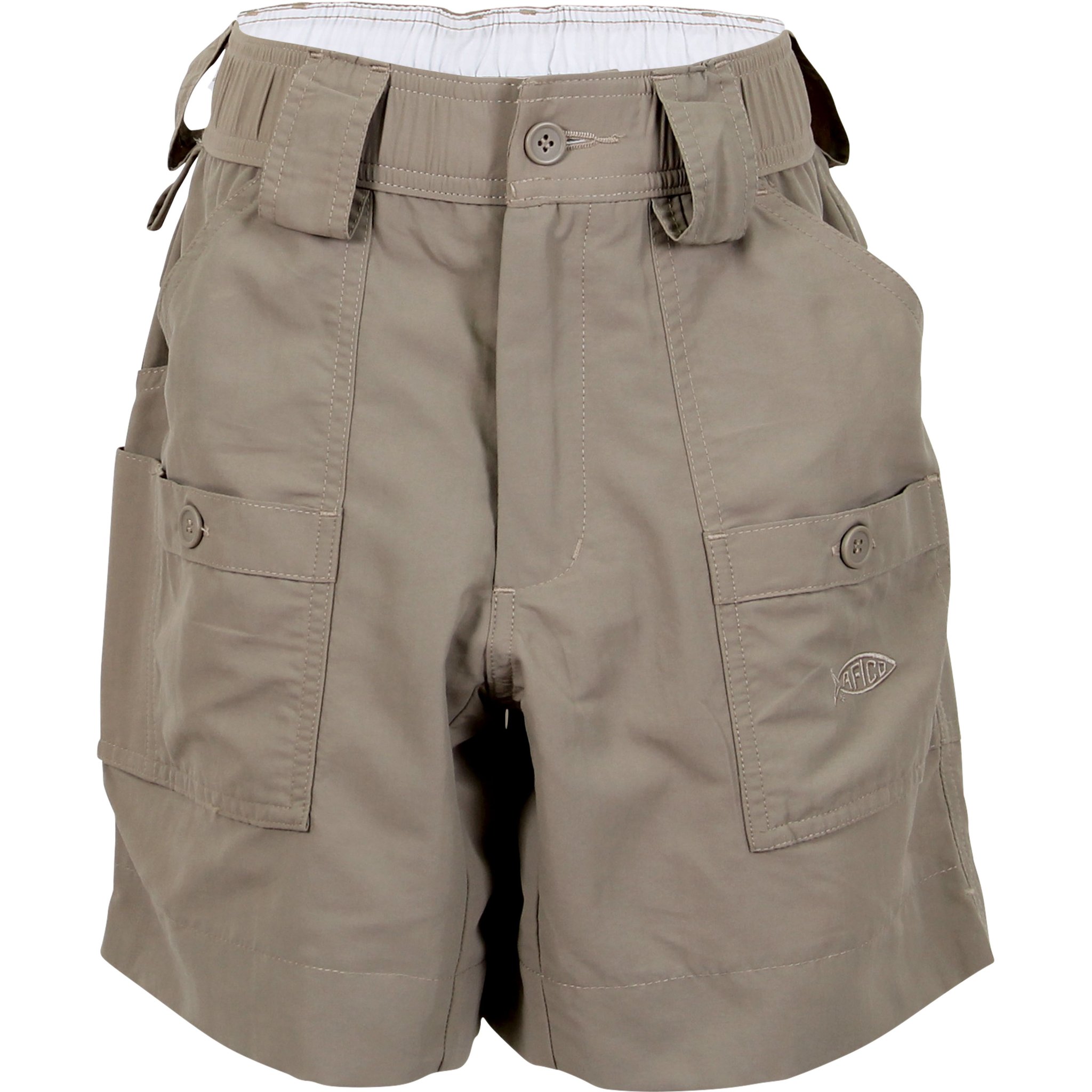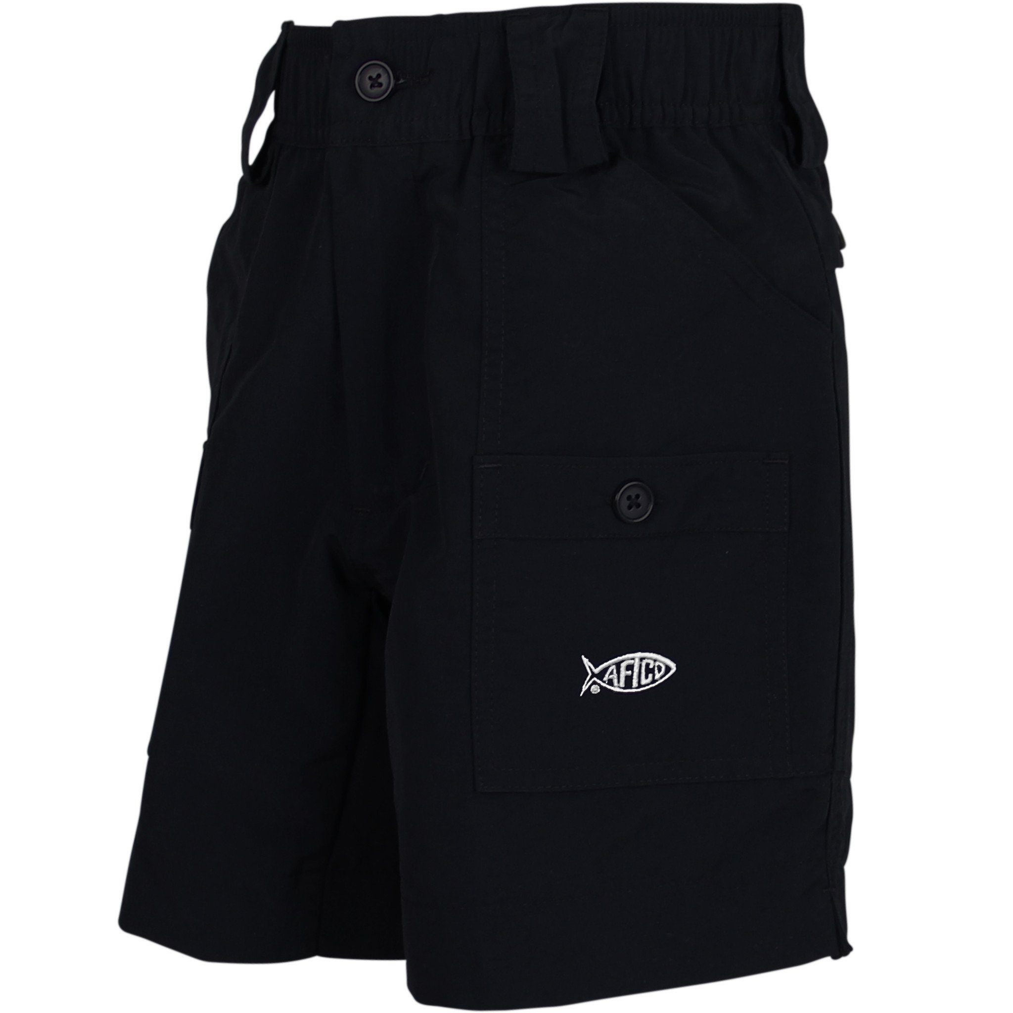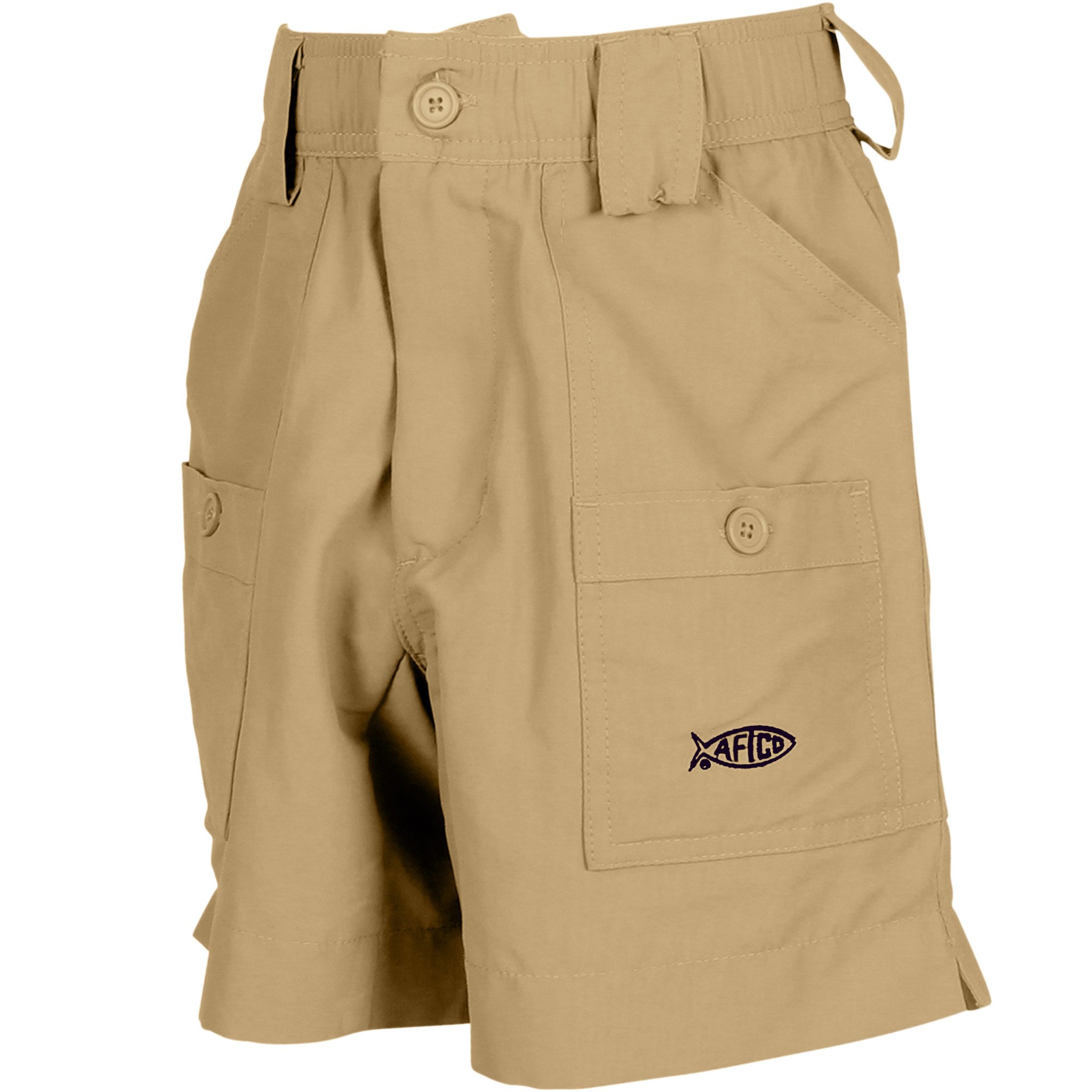 The “Original” AFTCO short, now offered in Boys sizing! Introduced in 1989 and long the choice of serious fishermen nation-wide, the AFTCO original fishing short is constructed of Dupont Supplex 3-ply nylon and has been treated with a stain resistant coating. It is a extremely strong and supple fabric that is also light weight and super comfortable day in and day out. It has 7 pockets (including a cordura-lined pliers pocket) so you will have a place for everything. It also has double layered rear for strength. 27 bar tacks keep these fishing shorts strong in all the right places. AFTCO embroidery on left pocket. Elastic waist + belt loops. The #1 pair of fishing shorts on the market, now for Boys!