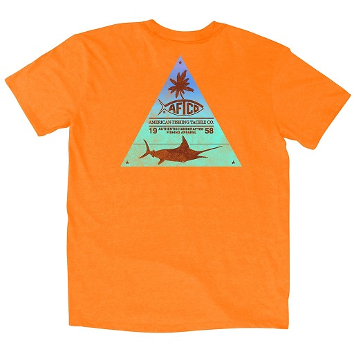 Aftco’s Mason Triangle fishing shirt for kids introduces children to what makes up the secret society of being an angler. The boys tee features a triangle that encapsulates a palm tree, a large billfish, and the AFTCO logo.