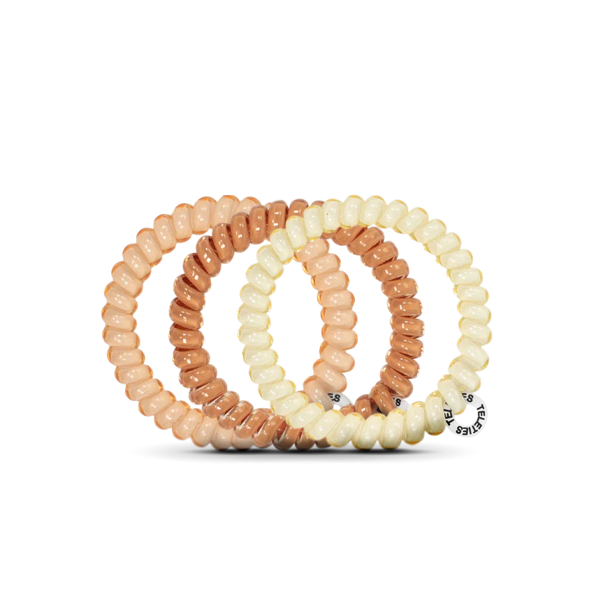 Hold your hair and enhance your style with teleties. The strong grip, no rip hair ties that double as a bracelet. Strong, pretty and stylish, teleties are designed to withstand everyday demands while taking your look to the next level.