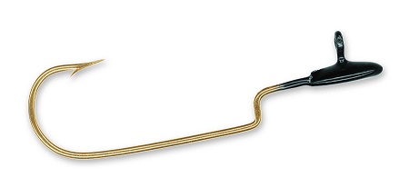 It has the flat head design with an off set hook for weedless “Texas Style” rigging.