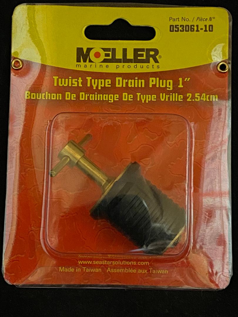 Moeller Marine twist turn drain plugs are made of corrosion-resistant brass and rubber. To tighten, simply push-in and rotate clockwise with the “T” handle.