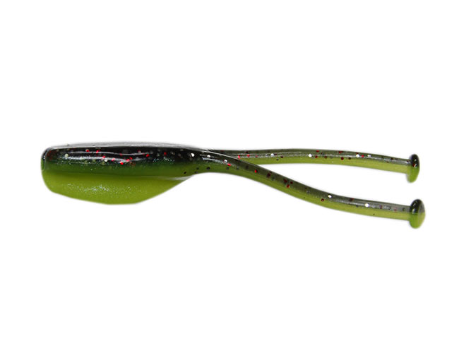 Although bulked up and shaped especially for skipping under docks, this large profile bait with twin kicker tails brings a new level of performance to all crappie techniques. 12-count bag.