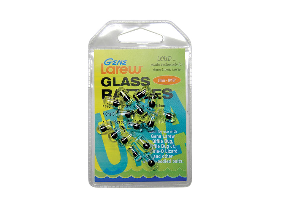 The Gene Larew Glass Bass Rattles add a rattling element of attraction to hollow-bodied baits such as the Gene Larew Biffle Bug, Biffle-O Lizard, and the Biffle-O. Also great for stuffing inside your favorite hollow body swimbait, topwater frogs, or any other plastic you desire. Made with premium Pyrex and a large metal bead, the Gene Larew Glass Bass Rattles produce a devastating underwater pitch that works wonders in low-visibility conditions.The Gene Larew Glass Bass Rattle measures 7mm long and is rounded on both sides for easy acess into body cavities. Made right here in the USA.