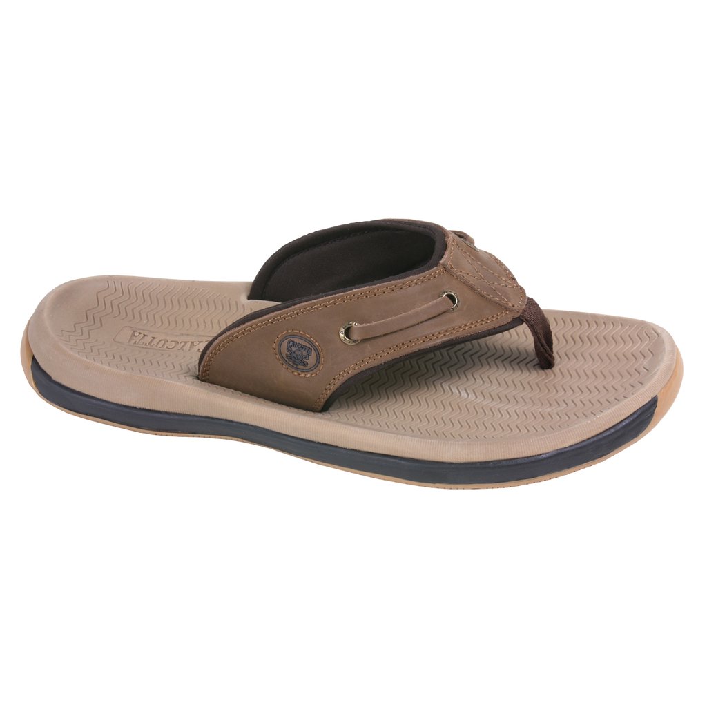 The Calcutta Bluewater sandal never falls out of style. Features a super comfortable footbead and non-skid, non-marking sole, and leather strap.