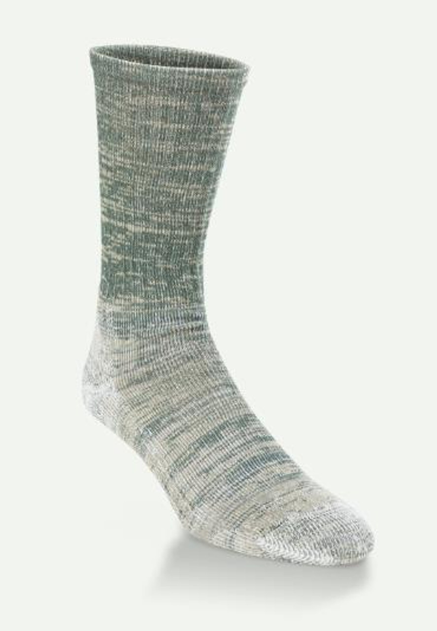 Merino Wool and Spun Polyester body yarns are quick-drying and moisture-wicking. Full nylon reinforcement on the outside of the sock. Fully cushioned footbed to reduce fatigue. Random plated outer yarns for a unique space-dye effect.