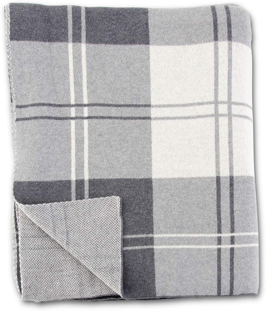K&K Interiors Cotton Knit Gray And Cream Plaid Throw Blanket #18126C-GY