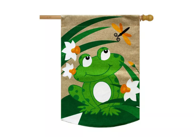 Briarwood Lane Happy Frog Burlap Summer House Flag #HFBL-H00863
