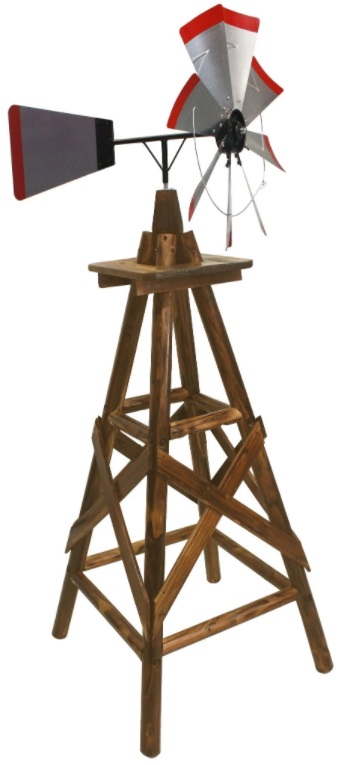 Take your garden to new heights with our 6.5 ft. rustic windmill. As a farmstead staple, this windmill stakes the claim of your land with towering pride. Whether you have a hobby farm, a vegetable garden, a suburban yard, or a sprawling ranch, this windmill has the charm to make your space feel like home. The pyramid base is made with the same process as our Char-Log line. The galvanized steel head is fully operational with sealed ball bearings and greased zerks which allow it to silently rotate with the breeze.
