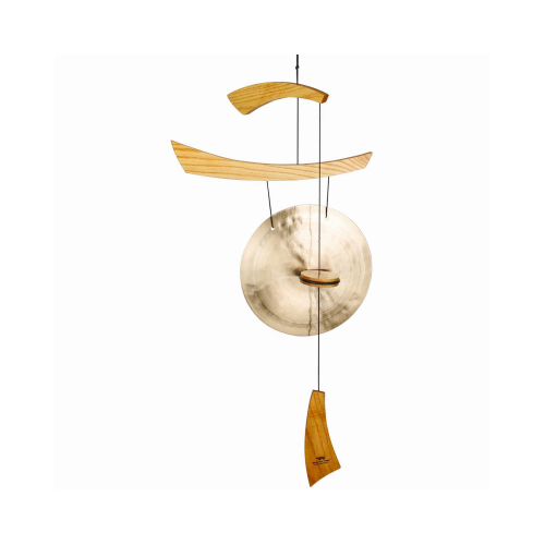 Emperor Gong Natural Wind Chime, Cherry Finish Ash Wood, Hand Hammered Bronze Gong.