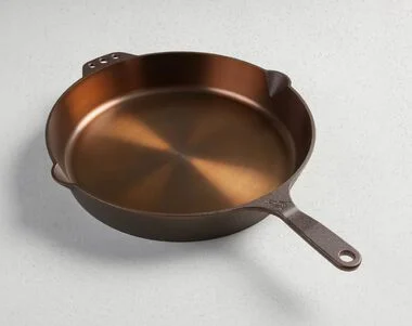 Reflecting our iconic cast iron skillet design, the No. 14 has a larger surface area, so you can go from searing multiple cuts of steak to sautéing a dinner’s worth of vegetables. From oven to grill or stovetop to campfire, you can rest assured that this extra-large skillet will become your go-to vessel for large quantity cooking. Complete with Smithey’s signature polished interior finish, the No. 14, when seasoned, is naturally non-stick and free of chemical coatings. Use it well.