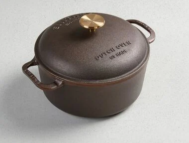 Honoring the best of vintage American Dutch oven design, the 5.5 Qt Dutch Oven is a beautiful and functional kitchen work horse that is destined to be a modern heirloom. It’s the perfect Dutch oven for families of four or for those who love to slow cook and stew. Featuring Smithey’s signature polished interior surface that is naturally non-stick and easy-to-clean, this Dutch oven combines the best of enameled cast iron heat performance with a surface finish that will never crack or chip—in fact, the interior surface will only get better with use and time. Crafted for versatility, we designed the lid of this Dutch oven to work as a custom-fit lid for your No. 10 Traditional Cast Iron Skillet for extra convenience. Use it well.