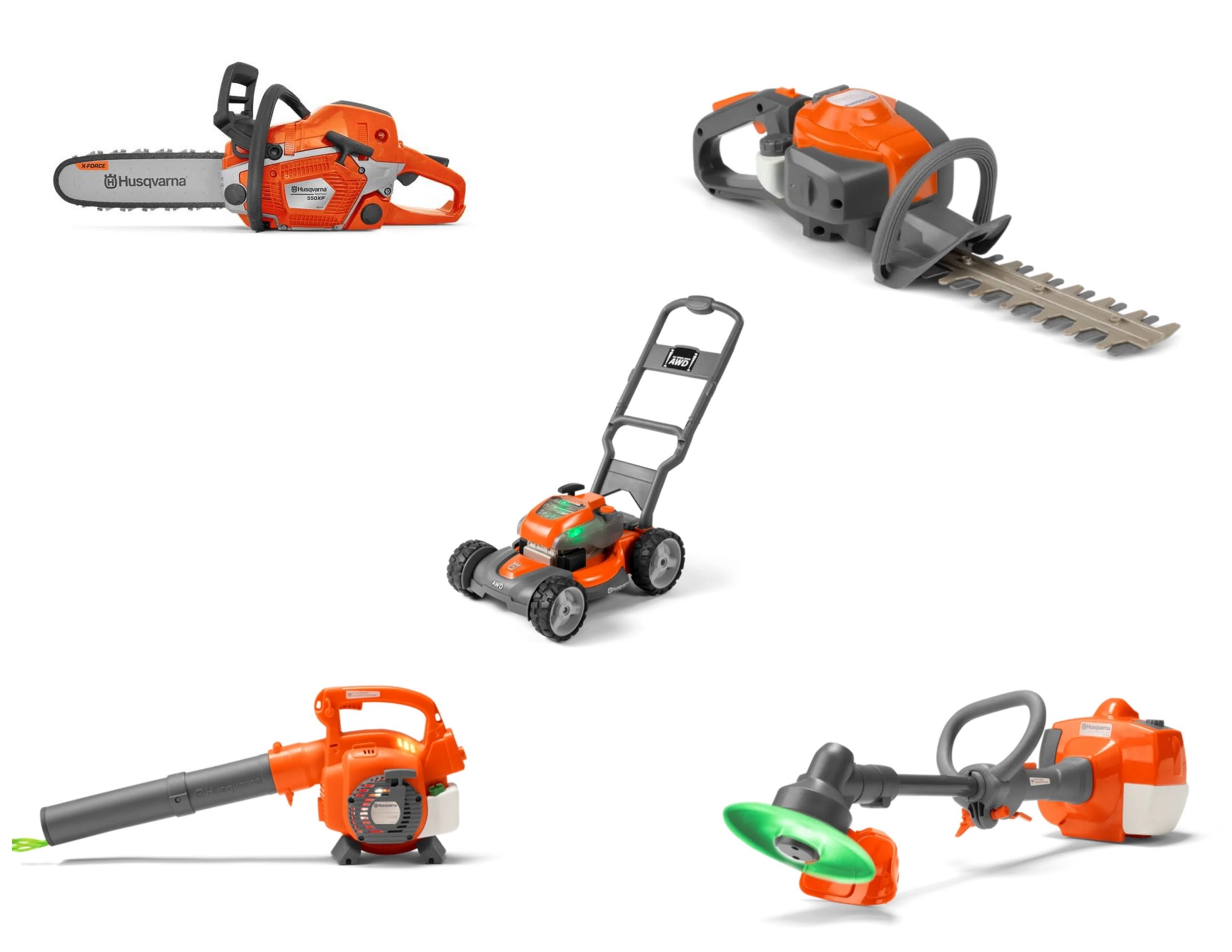 Get the perfect gift for your child that wants to work in the yard just like dad! This package of toy lawn equipment will let your child get to work in the yard!