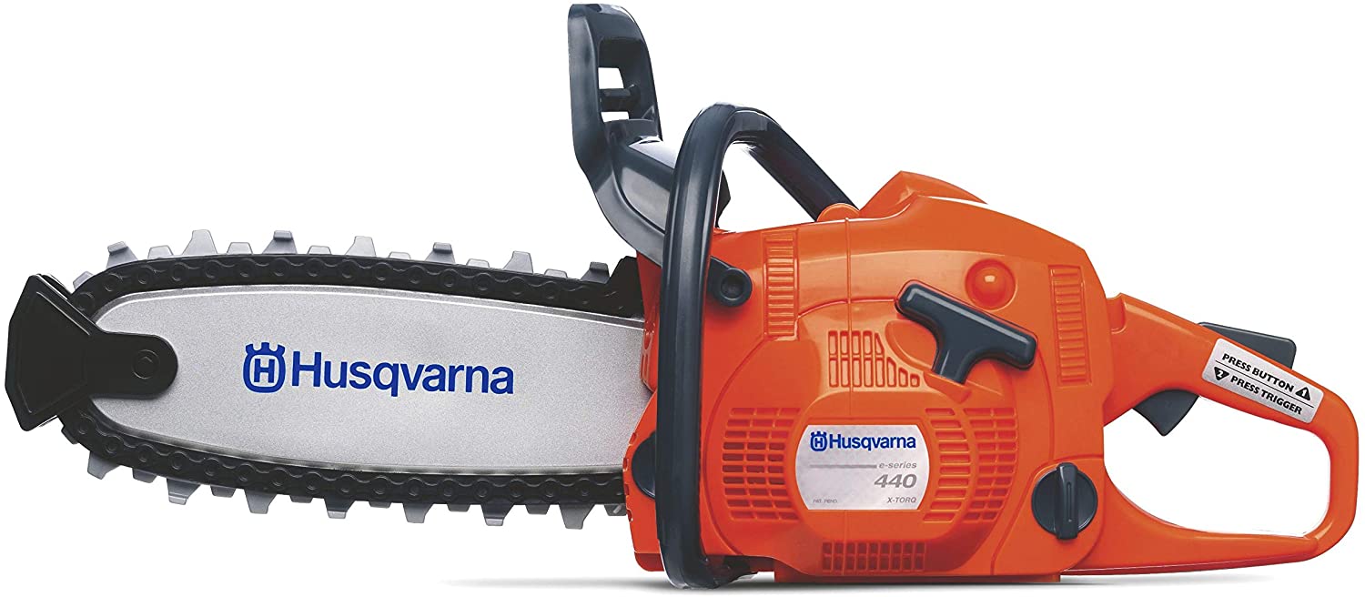 Looks like a real Husqvarna 440 Chainsaw! The toy chain saw is good for kids ages 3 and up. Features a realistic chainsaw sound and rotating chain.