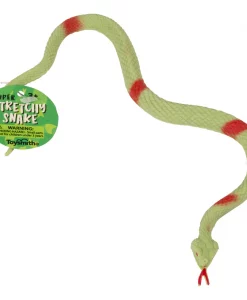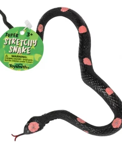 A smaller version of Toysmith’s popular Stretchy Snake toys, the Super Stretchy Snake comes in 4 assorted styles. Each 12-inch-long snake has a realistically textured body to provide an immersive play experience, a red forked tongue, and features either stripes or spots for markings. Colors vary but may include a mix of bright green, white, bright blue, black, pink, brown, light yellow and red.