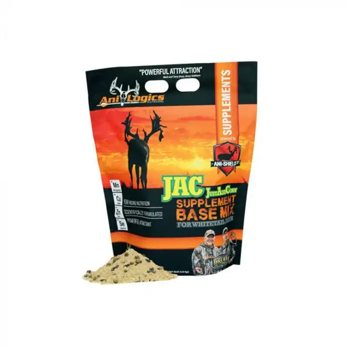 Adding two bags of JAC – Just Add Corn Supplement Base Mix to 40 pounds of corn creates a year-round, beneficial whitetail supplement. It’s scientifically formulated with our exclusive, proprietary Ani-Shield TX4 technology, designed to support immunity and antler growth. This highly digestible, packed with vitamins, chelated minerals, probiotics, and essential oils, ingredients that are often deficient in the natural diet of white-tailed deer. Mix JAC – Just Add Corn Supplement Base Mix with your own corn to protect your herd with the power of science!