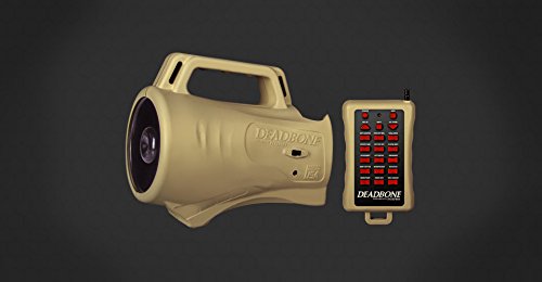 Foxpro Deadbone is an entry-level caller with high quality Fox Pro technology at an affordable price. The Deadbone comes standard with 15 high quality Fox Pro sounds and the ability to play two sounds at once. The Deadbone has a rugged ABS housing, which is lightweight and offers maximum portability. It features a single high-efficiency horn speaker that delivers a crystal-clear, high quality sound. It also has a pilot lamp/low battery indicator that glows green while on, and blinks when batteries are getting low. The Deadbone operates on 4 AA alkaline or rechargeable batteries. The remote gives you remote control of 15 sound selections, mute, volume, power on/off, and an add button to play 2 sounds at once. The remote operates on a 9 volt battery.