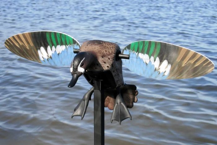 Based on the completely new design of the KING MALLARD™, the all new patent pending ELITE SERIES – BLUE WING TEAL is designed, as it should be with all working components attached directly to the support pole by a specially designed structural housing. The outside of this housing is designed to fit precisely inside a flexible decoy skin and a “drop in” battery holder, all resulting in a smoother, quieter, faster and more user friendly decoy.