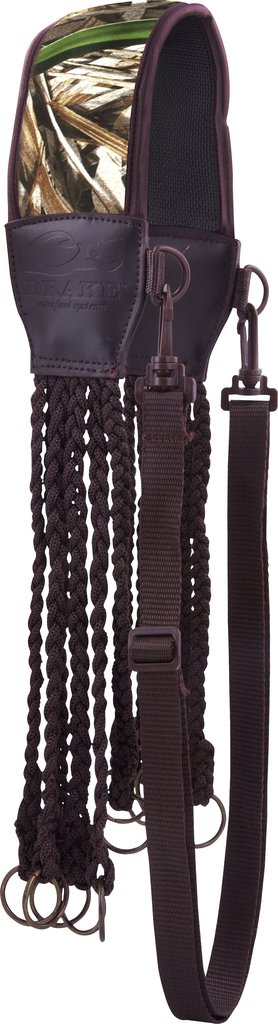 The Heavy Load Game Tote features 12 indestructible straps (6 on each side) with slip rings for holding your birds for easy transport out of the field. This model has Drake’s “No Hands” feature with attached waist strap to insure that the strap stays in place as you walk, keeping your hands free for your other gear. 5mm neoprene padded shoulder strap makes for a comfortable ride even when loaded with limits of ducks.