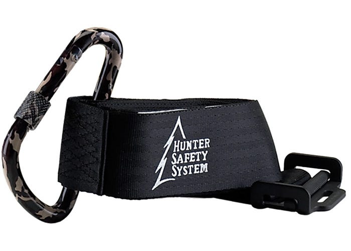 • Ideal answer to attaching a safety system to the tree quickly quietly & safely • Can be left in tree for duration of most state?s deer seasons • Heavy-duty camouflage locking carabineer with web strap stays on the tree and allows instant attachment of the harness tether each time you climb to your favorite treestand