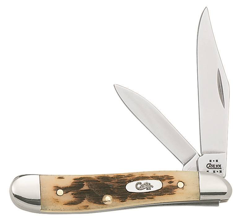 Peanut knives get their name due to their small petite size, fitting discretely and conveniently in a pocket. This durable folding knife two full-length blades, the clip blade and the pen blade. The clip blade is commonly used as a multi-purpose blade and preferred for detail work while the pen blade is great for light work. This knife is constructed with CASE Tru-Sharp? stainless steel which is a special high-carbon steel that helps the blades hold an edge longer than conventional steel. It also offers extraordinary blade strength and corrosion resistance.
