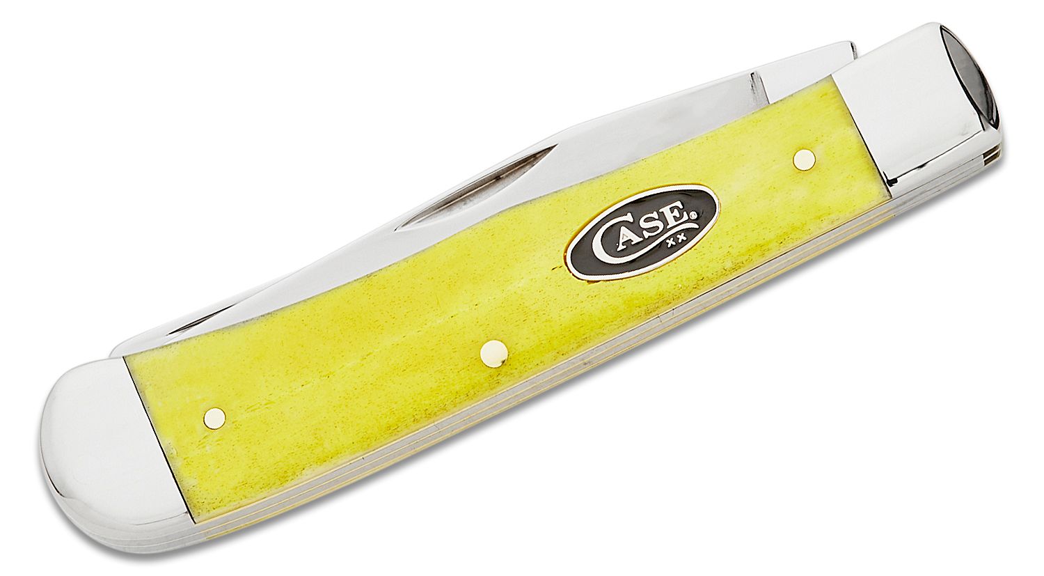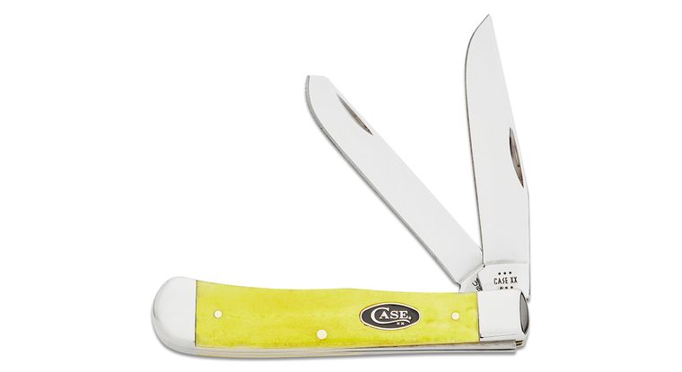 The smooth bone of this Case line of knives has a bright cheery yellow color offset nicely with a black Case oval shield to make an eye-catching piece. The Trapper gets its name from the consumer it was designed for. Because of its basic trapping and skinning blades and its light weight, it is a must-have knife for those who trap small game. It is a jack knife with two full-length blades; a slender Clip and a long Spey. The Clip blade is commonly used as a multi-purpose blade and preferred for detail work while the Spey blade is commonly used as an all-purpose utility blade.