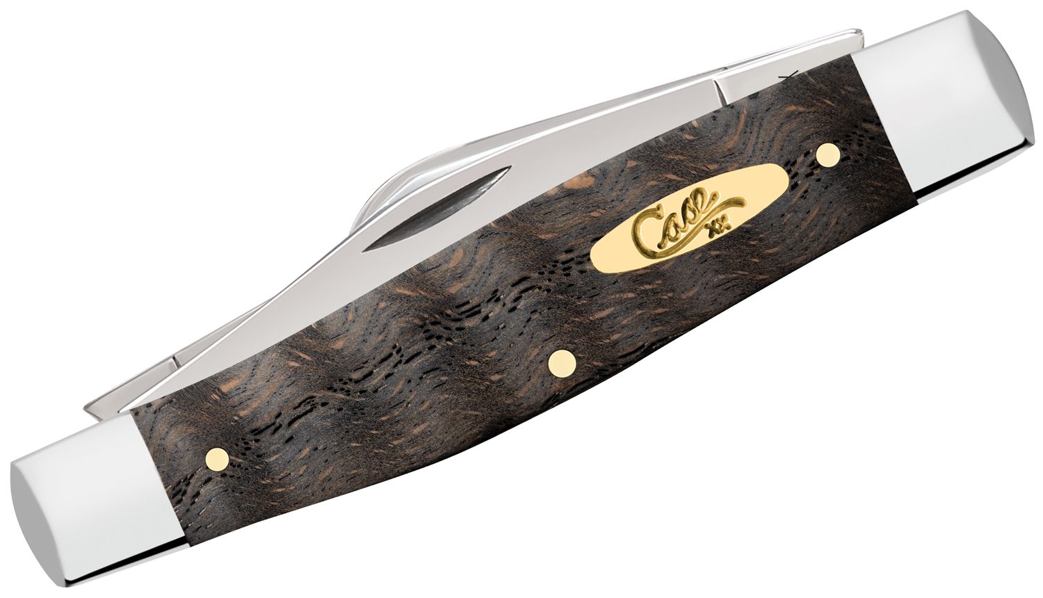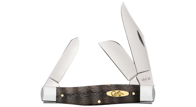 This black curly oak Stockman features smooth waves on the handle and Case XX oval shield. Stockman’s pack three blades in a convenient but very practical pocket knife. This Large Stockman is a traditional three-bladed multi-purpose pocket knife. The Clip and Sheepfoot blade sit on the pocket end while the Spey blade sits on the cap end. The Clip blade is commonly used as a multi-purpose blade and is preferred for detail work. The Sheepfoot blade allows for added strength at the point making it great for carving and achieving a clean cut. The Spey blade is commonly used as an all-purpose utility blade. These blades are constructed with Case Tru-Sharp stainless steel which is a special high-carbon steel that helps the blades hold an edge longer than conventional steel. It also offers extraordinary blade strength and corrosion resistance.