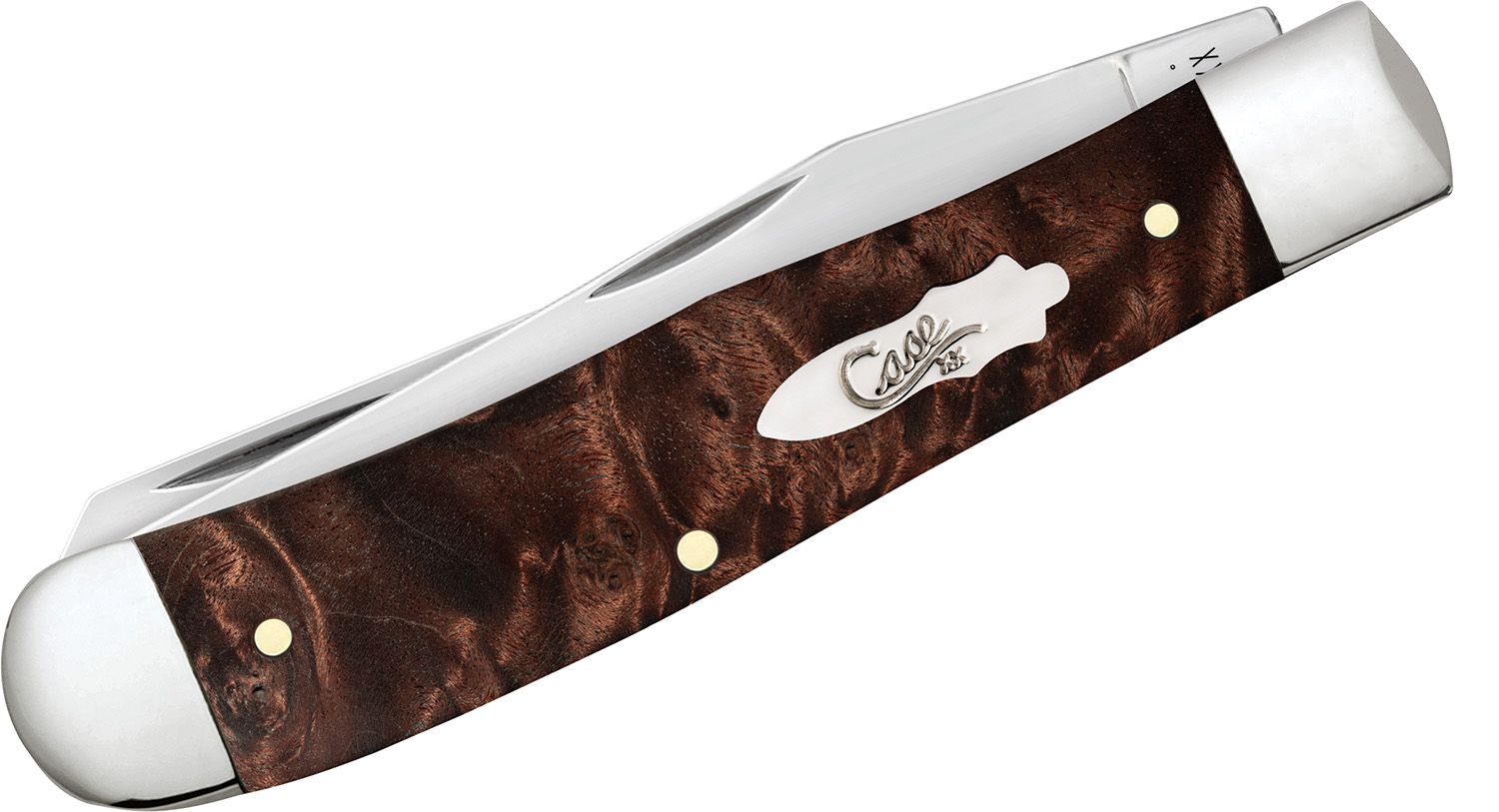 Case Smooth Brown Maple Burl Wood Trapper Pocket Knife #64060