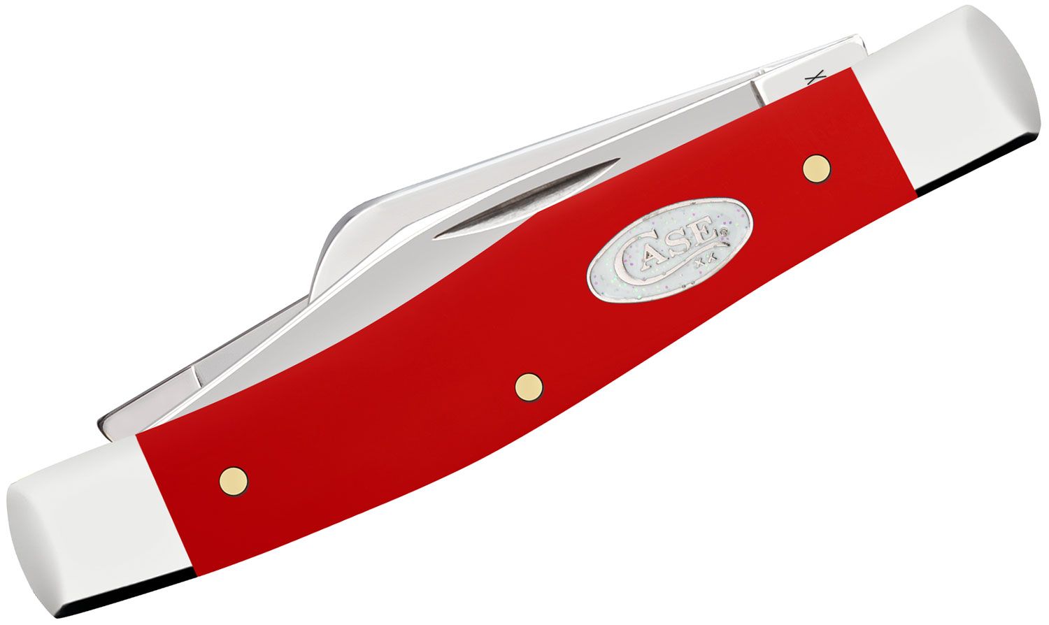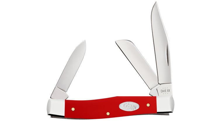 With a vibrant red coloration that catches the eye, the Red Synthetic family bears even more eye-catching features, like mirror-polished Tru-Sharp surgical steel blades and a White shield. Stockman’s pack three blades in a convenient but very practical pocket knife. The Clip and Sheepfoot blade sit on the pocket end while the Pen blade sits on the cap end. The Clip blade is commonly used as a multi-purpose blade and is preferred for detail work. The Sheepfoot blade allows for added strength at the point making it great for carving and achieving a clean cut. The Pen blade is great for light work. This knife is constructed with Case Tru-Sharp stainless steel which is a special high-carbon steel that helps the blades hold an edge longer than conventional steel. It also offers extraordinary blade strength and corrosion resistance.