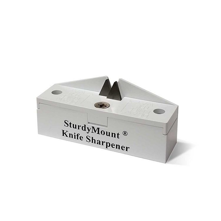 The AccuSharp SturdyMount Knife Sharpener mounts easily to cutting boards, kitchen counters, filet boards, workbenches, butcher blocks, cleaning tables; you name it. No more messy oils or stones. The diamond-honed tungsten carbide blades are reversible and will give you an excellent sharpening finish for 5 to 10 years of normal household use. A durable ABS plastic body and stainless steel screws make the SturdyMount Knife Sharpener ideal for indoor and outdoor use.