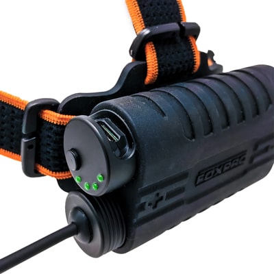 The FOXPRO Foxlamp gives you convenient hands-free scanning for nighttime predator hunting and other activities. Easily select white, red, or green light with the patented center axis rotary system to access the color that best suits your situational needs. No more fumbling around with multiple LED modules. The center axis rotary system keeps the LED centered on the spherical lens, giving maximum potential light output and preventing artifacts and distortion in the light beam. Its extreme brightness allows you to quickly locate and identify your target. The easily accessible dimmer rheostat knob offers precision brightness control to increase or decrease light intensity. The pivot base system provides quick vertical beam adjustment. Focus the beam to a specific spot or open it up to flood the field by rotating the beam focus ring. Check your battery level at any time with the press of a button and conveniently recharge the Foxlamp without the hassle of removing batteries via the quick connect charge system. The Foxlamp is backed by a three-year LED warranty and FOXPRO’s unmatched customer support.
