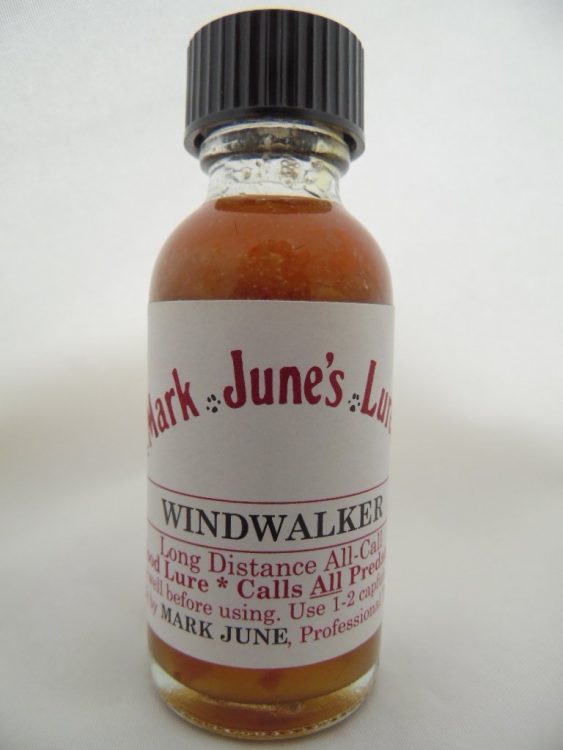 June’s Wind Walker Lure is a predator food lure with a thick, syrupy consistency. For those of you who like a pinch of skunk, it’s in there. The seven ingredients used to make this lure are all natural to a predator’s diet so there’s nothing in this bottle to spook ’em. Effective at all types of sets. Gets better as the temp gets colder. This is an exceptional agent, east or west. Put up in wide mouth bottles. Great on red or grey fox, coyotes, cats, coon, mink and otter. Probably Mark June’s best “all around” lure based on customer testimonials.