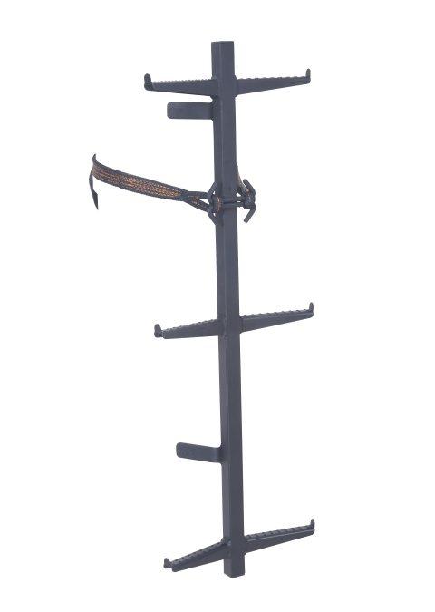 Constructed with steel, the M240 Hang-On Climbing Sticks boast several specific design features that add sturdiness and support, including a stackable single tube design with double-sided angle steps. A double loop connection straps with an easily pull cam buckle provides another smart safety feature.