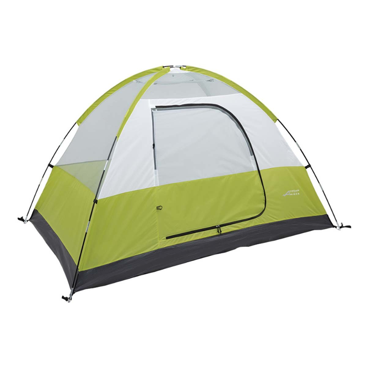 The Cedar Ridge Aspen 4P Tent is a four person tent for your small camping crew. The days are long and adventurous, so you’ll eventually need to hunker down for some sleep. This free-standing tent pitches quickly, so if you’re arriving late or just looking to get started with the fun, it’s ready so you won’t have to worry about it later in the evening. Slip into one of two doors, the tent body offers privacy and airflow, plus protection from the bugs. The durable rainfly prevents wet weather from soaking the group through the night or when waiting out the unexpected rain shower midday.