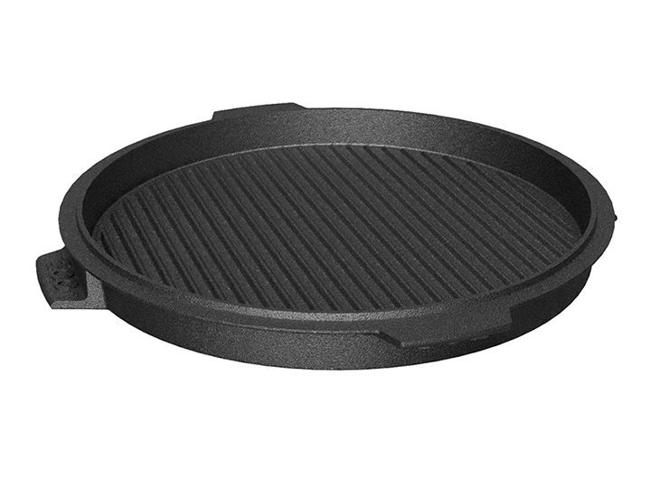 The Big Green Egg 14 in / 36 cm Dual-Sided Cast Iron Plancha Griddle is perfect for adding sear marks and a delicious flavor-packed crust to foods. This new size will fit perfectly in the MiniMax EGG on up! Big Green Egg cast iron products are built to deliver a lifetime of cooking enjoyment. You can use in your EGG for everything from blackened chicken and seafood, to grilled vegetables and steakhouse-style seared steaks.